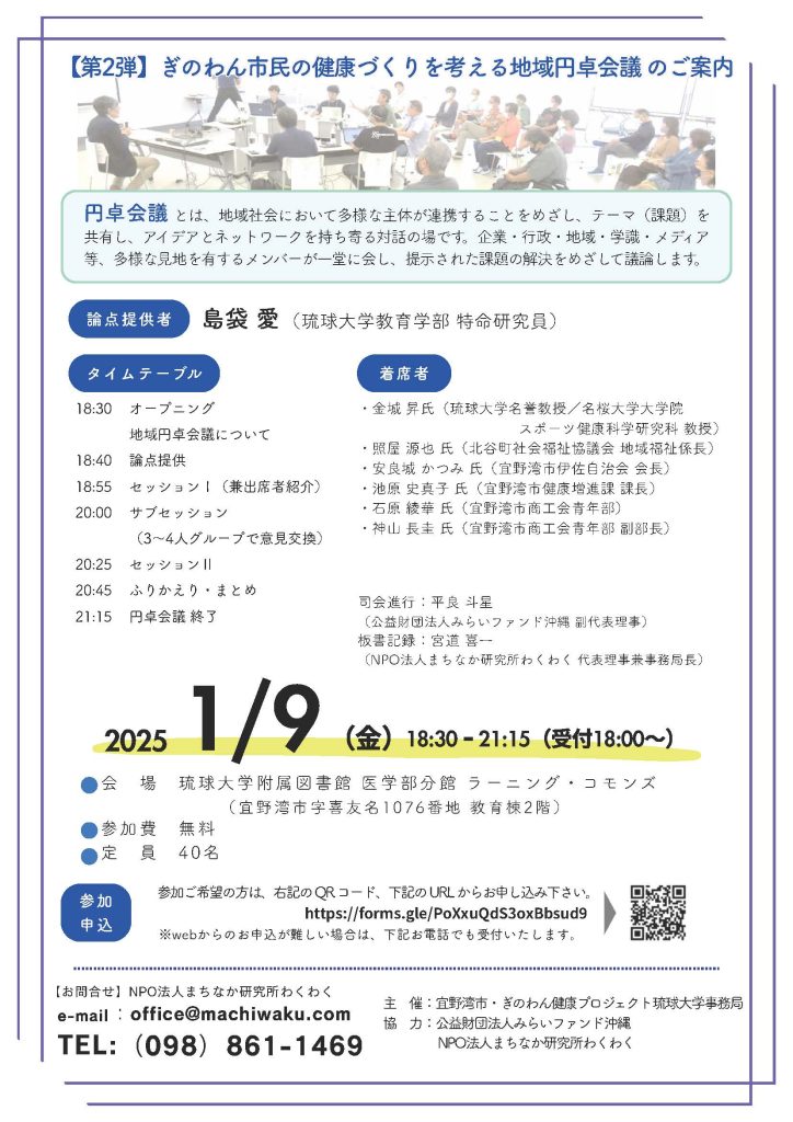 チラシのPDFはこちらから → 【第2弾】ぎのわん市民の健康づくりを考える地域円卓会議