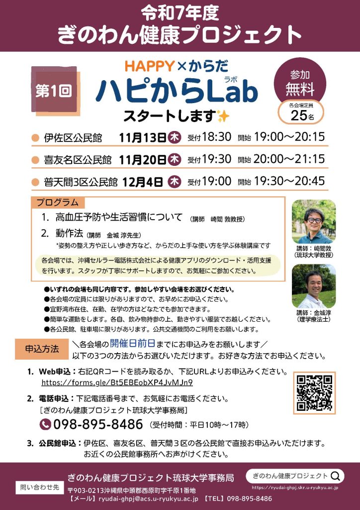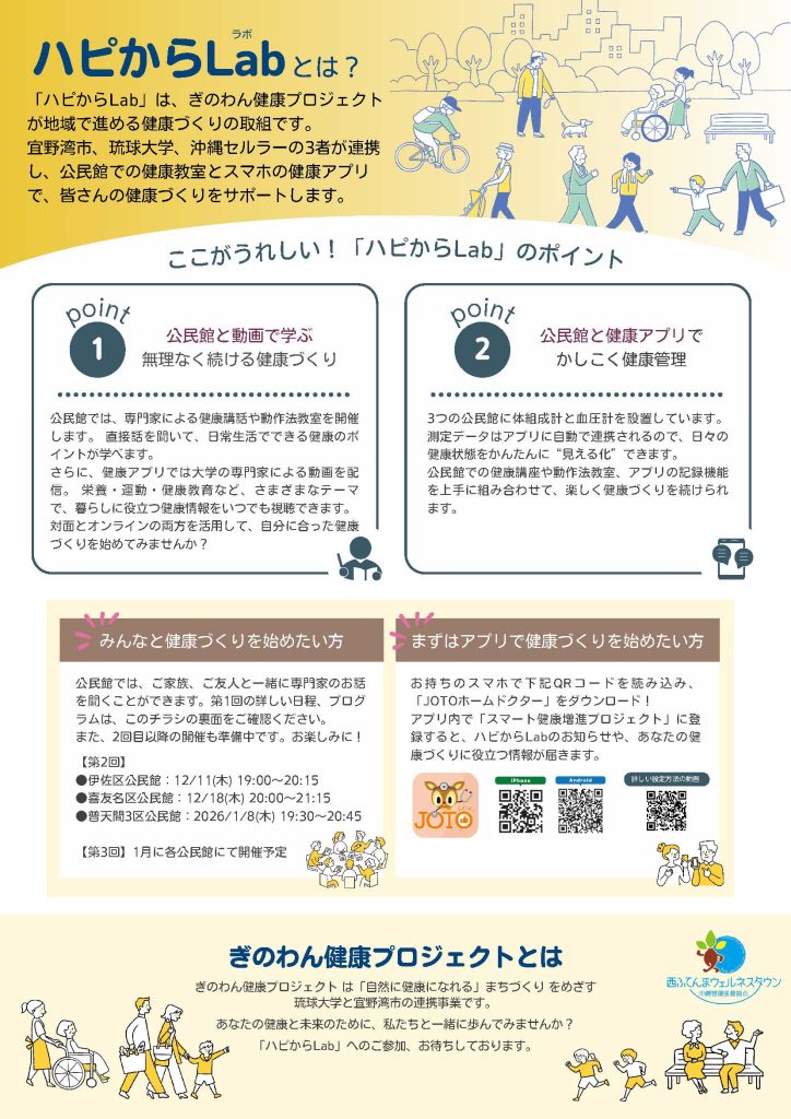 公民館を拠点に、地域のみなさんが楽しく参加できる健康教室「ハピからLab」を開催します。