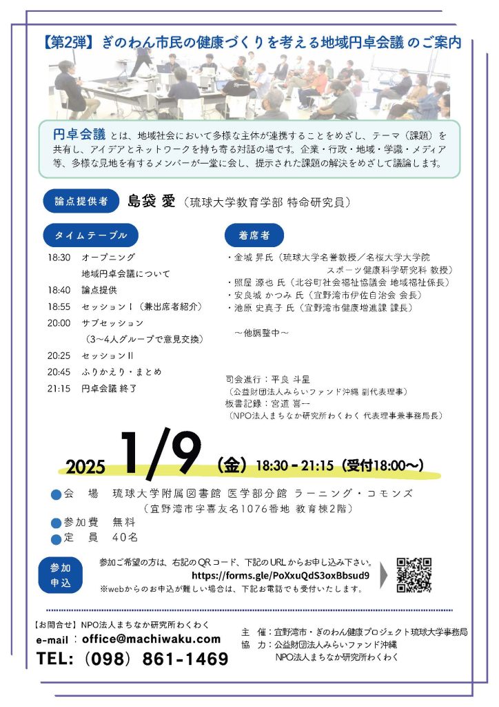 チラシのPDFはこちらから → 【第2弾】ぎのわん市民の健康づくりを考える地域円卓会議